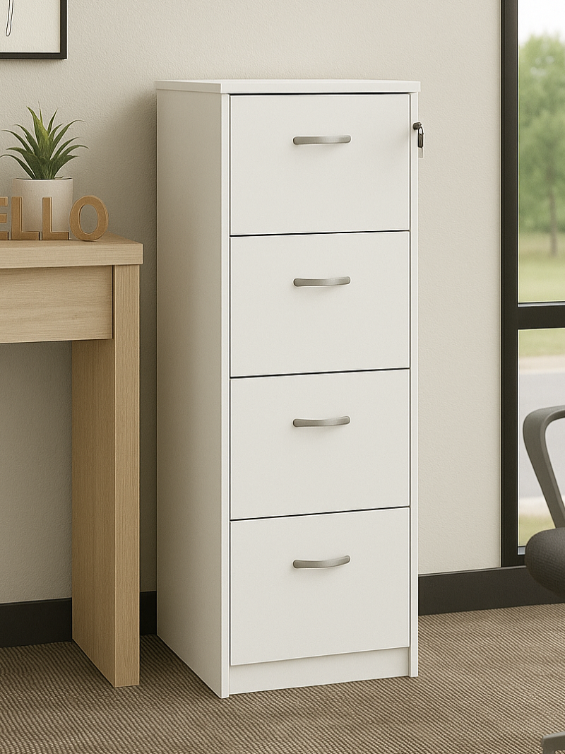 Deluxe Office Filing Cabinet 4 Drawer LF4WH - Wooden Office Storage by Dams