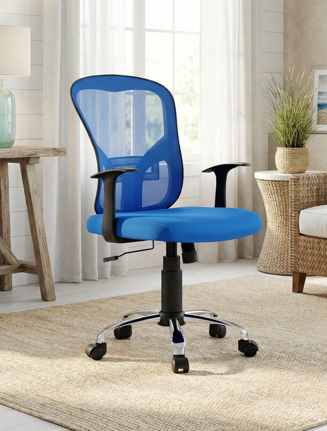 - Blue mesh backrest with lumbar support